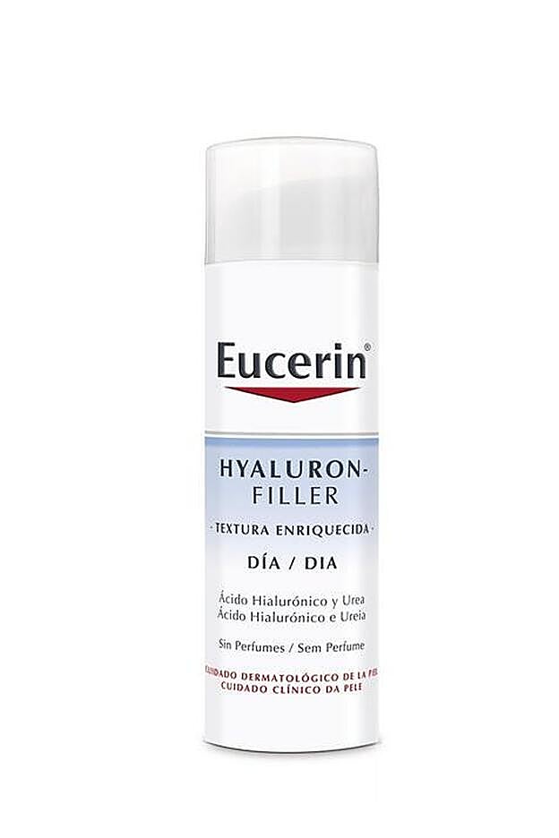 La crema de día Eucerin Hyaluron-Filler es un tratamiento de día que se funde en la piel dejándola bien hidratada y con una sensación suave y aterciopelada. La combinación especial de 5% de urea y el ácido hialurónico de alta y baja concentración molecular proporciona una humedad intensa mientras actúa contra la aparición de líneas de expresión y arrugas. Contiene filtros UVA para proteger contra el envejecimiento cutáneo ocasionado por los rayos ultravioleta. Consíguela en Promofarma por 25,68 euros.