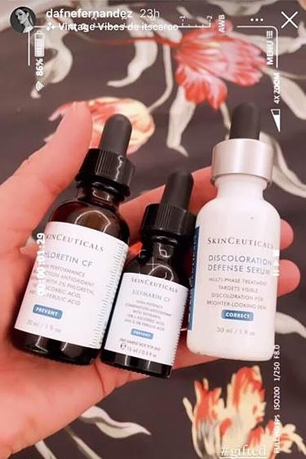 La actriz explicó que desde la marca le habían enviado para probar estos tres productos y aclaró que, aunque no se trataba de una publicidad pagada, no podía evitar recomendarlos por los buenos resultados que había obtenido. Dafne se refiere a tres sérums de la firma Skinceuticals. El primero de ellos es el Phloretin Cf que estimula la síntesis del colágeno para mejorar los signos de la edad y reduce la hiperpigmentación. Es un producto que cuesta 150 euros (puedes comprarlo aquí) y que acelera la renovación celular para normalizar la textura de la piel. ¡Una maravilla!
