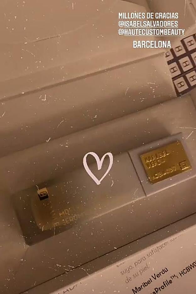 El sérum ultraconcentrado de Haute Custom Beauty se personaliza eligiendo moléculas biotecnológicas de útima generación sin diluir, péptidos innovadores y los extractos marinos y botánicos más puros. Basado en tu DermaProfile (el resultado de la encuesta que debes realizar), se combinan los ingredientes necesarios para satisfacer las necesidades de tu piel creando un sérum concentrado completamente personalizado. Puedes enriquecer tu propia fórmula añadiendo componentes que refuercen el tratamiento y este producto queda grabado con un número de fórmula único y el nombre que tú elijas, como puedes apreciar en la imagen que ha publicado Maribel Verdú. Su precio es 185 euros pero, si le añades componentes extra, el producto se encarece.
