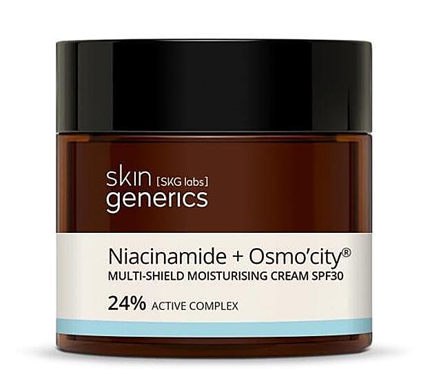 Multi-protección FPS30 Niacinamide + Osmo'city de Skin Generics es una crema-gel con niacinamida que aporta una hidratación profunda, reduce la aparición de líneas de expresión y manchas, y ayuda a acelerar la regeneración celular. Además, tiene factor de protección 30 UVB y UVA (29,95 euros).