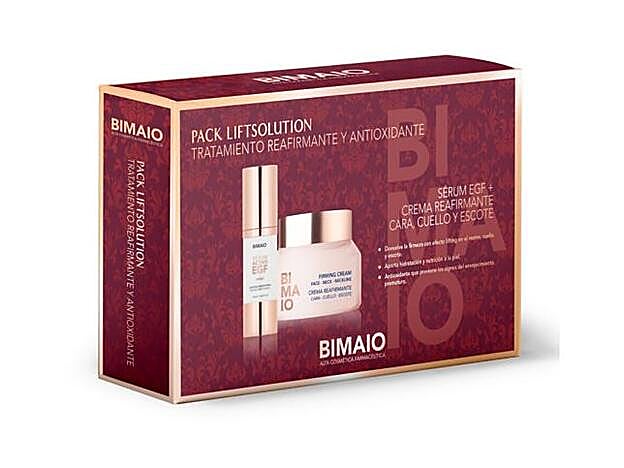 Se trata del Pack Liftsolution de Bimaio que incluye el sérum EGF y la crema reafirmante para cara, cuello y escote. Gracias a sus propiedades reafirmantes y antioxidantes, devuelven la firmeza con efecto lifting en el rostro, cuelo y escote, aportando hidratación y nutrición a la piel y previniendo los signos del envejecimiento prematuro.