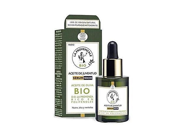 Se trata del aceite sérum de juventud de La Provençale BIO elaborado con aceite de oliva rico en polifenoles antioxidantes y vitamina E. Su fórmula combina la acción de otros tres aceites vegetales: el aceite de argán BIO, rico en ácidos grasos para ayudar a mantener la función barrera cutánea; el aceite de jojoba BIO y el aceite de camelina, rico en omega 3, para ayudar a mejorar la elasticidad y luminosidad de la piel. Noche tras noche, su acción regeneradora reduce los signos de la fatiga con el fin de despertar la luminosidad de tu piel.