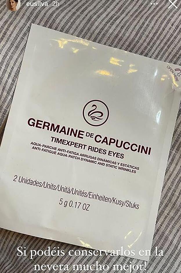 "Mi cura para cuando no me dejan dormir y tengo que tener buena cara", dijo Eugenia junto a un vídeo en el que aparecía ella con unos parches en la zona inferior de su mirada. La modelo se refiere a los Aqua-Parche Timexpert Rides Eyes Germaine de Capuccini, unos parches especiales para el contorno de los ojos que tienen como objetivo eliminar la fatiga al instante. Son antiarrugas y antifatiga y poseen un efecto lifting. Se trata de un hidrogel con alta capacidad hidratante, que se adapta y adhiere perfectamente a la zona ocular y que genera una alta permeabilidad cutánea por lo que se favorece la transferencia de los activos contenidos en su matriz en un tiempo récord de 20 minutos.
