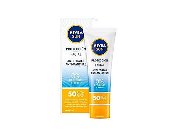 Nivea Sun Proteccion Facial Antimanchas Q10, con protección ultraespectro, protege la piel del daño inducido por los rayos UVA/UVB y de los efectos de la Luz Visible de Alta Energía (HEVL), como el envejecimiento prematuro. Además su fórmula con Q10 previene y combate la aparición de líneas, arrugas y manchas de pigmentación inducidas por el sol. Puedes encontrarlo en Druni por 10,99 euros.