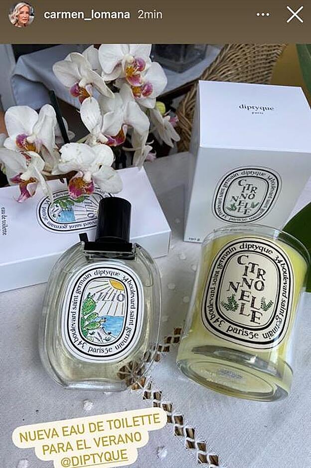 "Nueva eau de toilette para el verano", escribió Carmen en su perfil de Instagram junto a una fotografía en la que aparece su última adquisición y el que va a ser el olor que le acompañará durante el verano. Se trata de la Eau de toilette 34 Boulevard Saint Sermain en su nueva versión Ilio, un perfume de la familia de los florales que pertenece a la firma Diptyque, una Maison de la perfumería pionera, precursora del arte de vivir a través de los sentidos, donde el perfume y el arte lo impregnan todo.