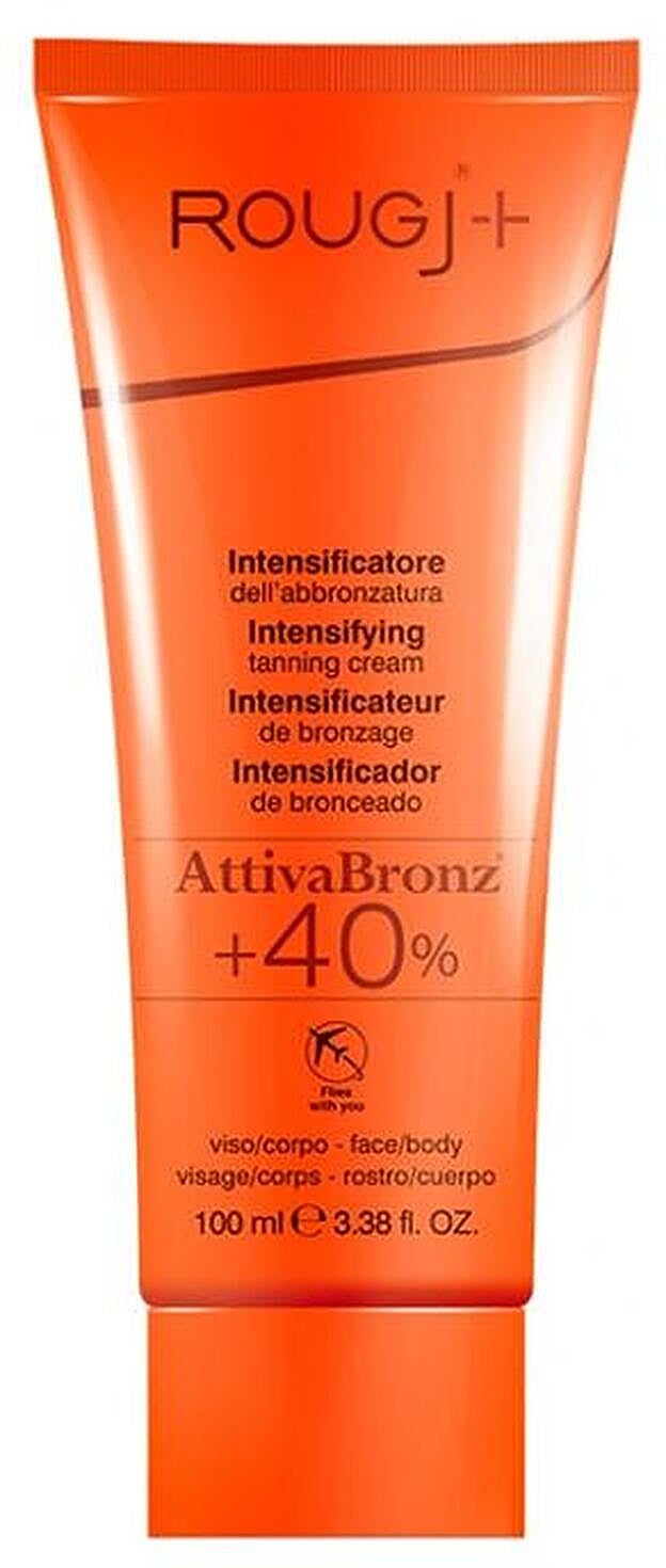 AttivaBronz + 40% Crema Intensificadora de Bronceado de Rougj es una crema cosmética cuya función principal es intensificar el bronceado. Estimula la producción natural de melanina y aumenta la intensidad del bronceado en un 40%. También ofrece una acción antienvejecimiento e hidratante (10,60 euros).