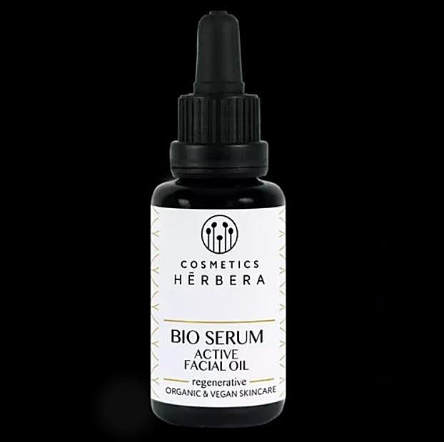 Bio Serum Active Facial Oil de Hebera Cosmetics. Selecta combinación de 7 aceites secos ecológicos con propiedades regeneradoras, purificantes y calmantes. Un verdadero cóctel orgánico con un increíble olor a hierbabuena para restaurar los tejidos, devolviendo la belleza y luminosidad propias de tu piel. Precio: 38,50 euros.