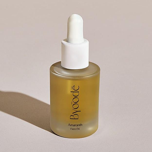 Amaranth de Byoode. Elixir de rostro, cabello y uñas. Se trata de un sérum en textura oleosa que es nutritivo para acondicionar y suavizar la piel y las puntas. Cuenta con el poder reparador de los aceites de amaranto, soja y argán y es rico en vitamina E y aporta antioxidantes y vitaminas gracias a la col azul marina. Es ideal para las pieles secas o sensibles porque resulta reparador y, además, tiene acción antiinflamatoria. Precio: 52 euros.