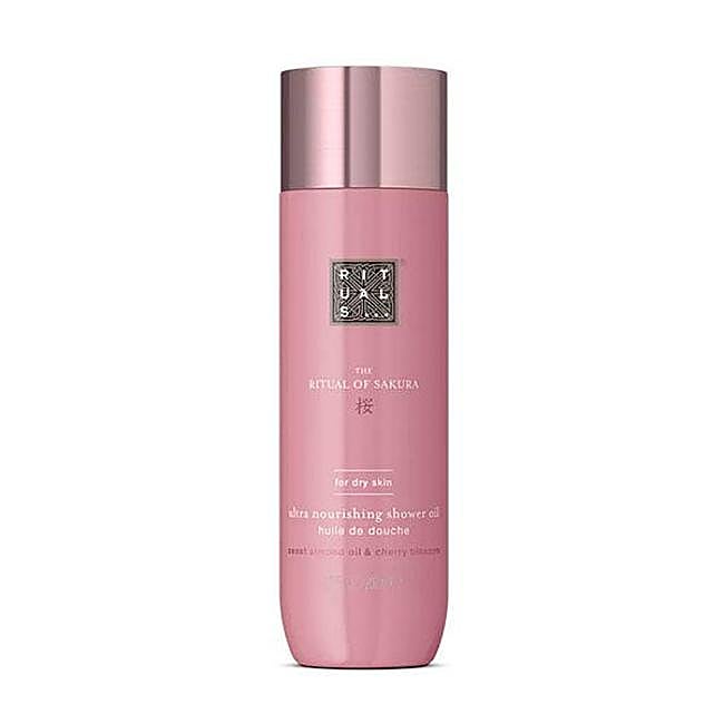 El aceite de ducha 2 en 1 The Ritual of Sakura de Rituals contiene aceite de almendra dulce, ácidos grasos no saturados y el aroma dulce de la flor de cerezo. Hace maravillas por la piel, limpiándola, hidratándola y relajándola y se absorbe rápidamente, sin dejar restos grasos, mientras que las flores de cerezo relajan y equilibran el tono de la piel.