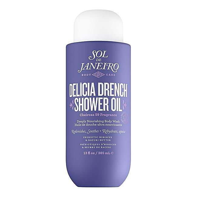 Aceite de Ducha Delicia Drench de Sol de Janeiro es un un jabón corporal profundamente hidratante que reaviva la barrera cutánea y refuerza el microbioma para una piel intensamente nutrida y aterciopelada, con una estimulante y deliciosa fragancia amaderada. Infusionado con la bruma perfumada Cheirosa 59.