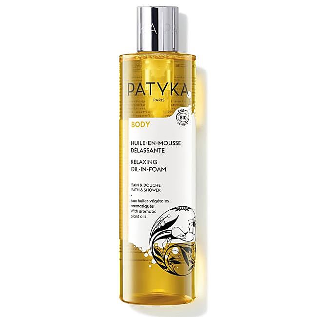 Este es un aceite en espuma relajante con 4 aceites vegetales y esenciales de Patyka. Este primer tratamiento, inspirado en la fitoterapia, está enriquecido con aceites vegetales ecológicos para nutrir y regenerar la piel. Su textura de espuma de aceite dorada, altamente sensorial y ultrasuave, se funde con la piel.