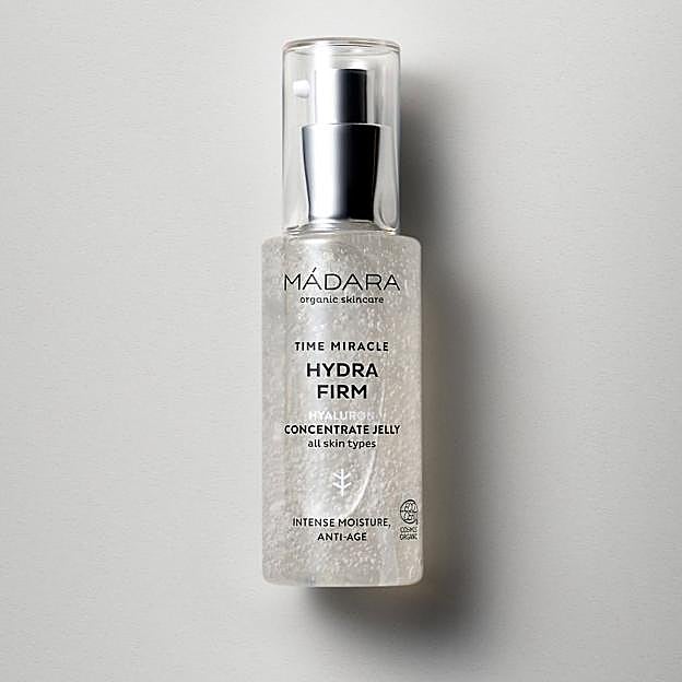 Hidro gel sin aceite con textura de gelatina concentrada que contiene una superdosis de ácido hialurónico para lucir una piel de aspecto más firme y joven. Gracias a su composición basada en jugo de abedul, ácido láctico y hialurónico, éste reabastece la piel sedienta reteniendo la humedad y reduciendo la pérdida de agua transepidérmica. Además, actúa como capa para lograr una hidratación en profundidad de la piel, una visible firmeza y potenciación de la síntesis de colágeno. Lo puedes encontrar en la web de Mádara por 33 euros.