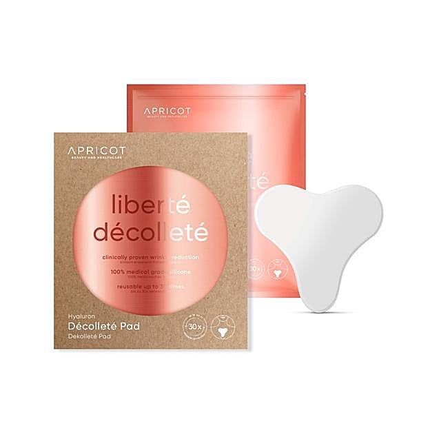 El primero que ha llamado nuestra atención es de la marca Apricot y contienen ácido hialurónico para hidratar la zona del escote y contribuir al alisado de las arrugas. Está hecha de silicona pura de grado médico, y puedes usarlo hasta 30 veces siempre y cuando las limpies de manera regular y las trates con el mimo que precisan. Cuestan 42,95 euros y las puedes encontrar en Douglas.