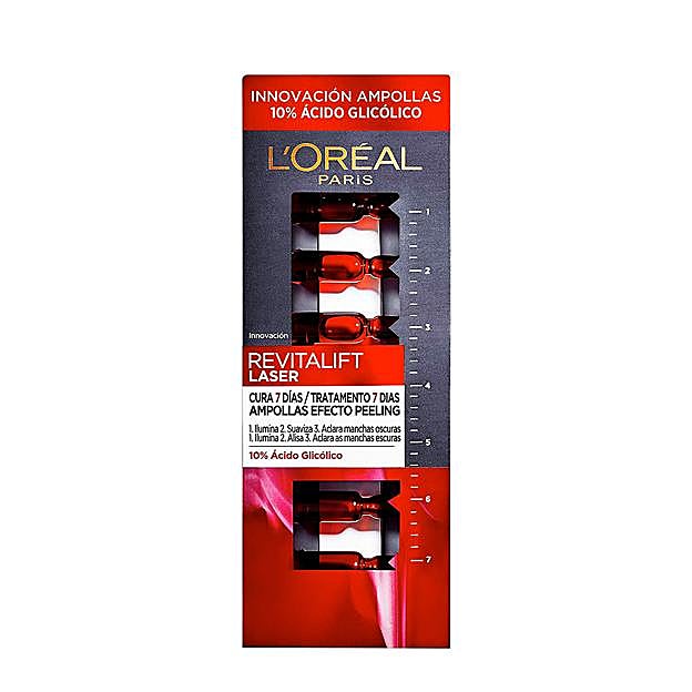 Se trata de las ampollas Revitalift Laser de L'Oréal (14,89 euros). Es un tratamiento que consta de siete ampollas y ayudan a renovar la piel. Consiguen exfoliar la piel, hidratarla y aportarle un tono más radiante. También ayuda a suavizar las líneas de expresión y a aclarar las manchas.
