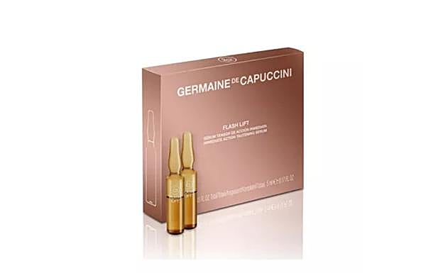 Ampollas flash de efecto lifting rápido que aporta a la piel la energía perdida a la vez que minimiza al máximo los signos de cansancio, reduciendo pequeñas arrugas y líneas de expresión. Sérum tensor de acción inmediata para el mejor reflejo de unos rasgos descansados. Con acción tensora, hidratante, desfatigante, homogeneizadora de la textura de la piel. Puedes encontrar el envase de 5 unidades por 14,26 euros.