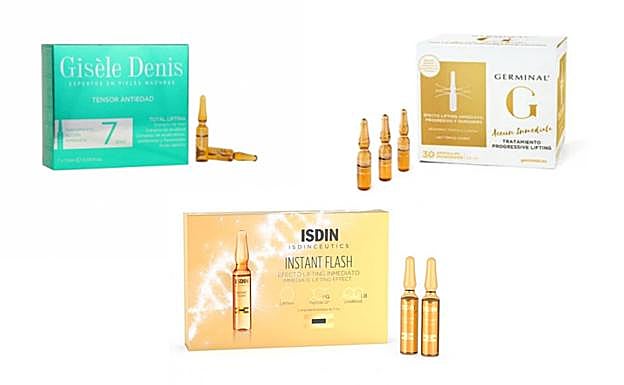 Puedes encontrar el efecto lifting de estas ampollas en otras marcas como las ampollas Total Lifting de Gisèle Denis, que tratan de forma rápida los signos de fatiga visibles, proporcionando un efecto tensor, hidratante y tonificante a la piel (12,99 euros en Douglas); las Instant Flash Ampollas Efecto Lifting de Isdin, que reducen las arrugas y líneas de expresión eliminando los signos de fatiga (10,59 euros en DosFarma); o las Progressive Lifting de Germinal Acción Inmediata que proporcionan una piel mas firme, tersa y luminosa, difuminando las arrugas y borrando las huellas de fatiga de forma inmediata (33,04 euros en PromoFarma).