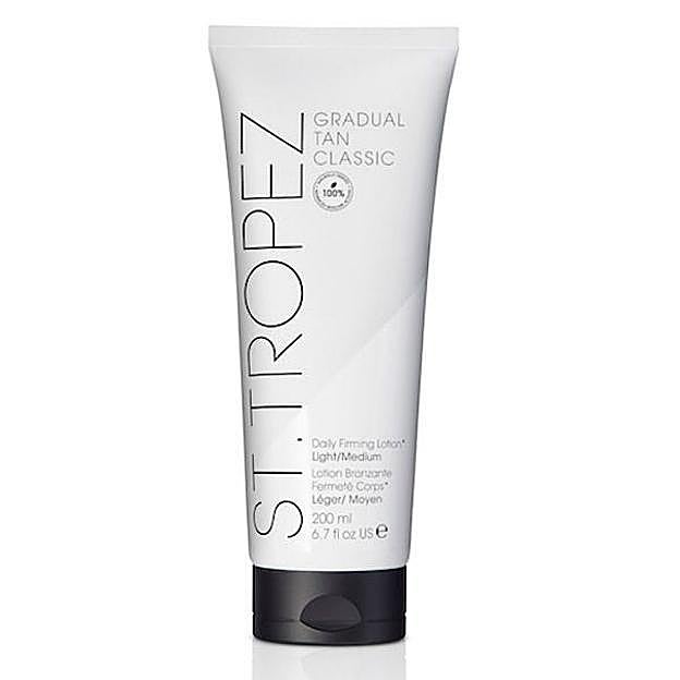 Gradual tan classic de St. Tropez. Esta loción multitarea combina 5 superbeneficios para el cuidado de la piel con una dosis diaria de brillo para que puedas hidratar, proteger, suavizar, calmar y reafirmar la piel todos los días.Esta loción diaria, fácil de aplicar y que no deja rastro, aporta a la piel un aspecto bronceado y una hidratación duradera de hasta 72 horas. Combina con una tecnología superior de bronceado y potenciadores de la melanina, proporciona un brillo natural sin imperfecciones. Precio: 16,99 euros en Druni.
