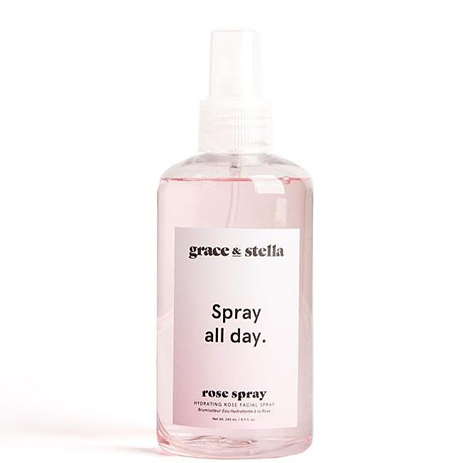 Spray All Day de Grace and Stella. La bruma facial definitiva para mantener la piel fresca e hidratada, tonificar el tono desigual y reducir las rojeces. El agua de rosas tiene propiedades antiinflamatorias y mantiene el pH de la piel equilibrado, ayudando con el acné, la dermatitis, el eczema y la cicatrización. ¡Te hará decir «ahh»! Precio: 9,95 euros.