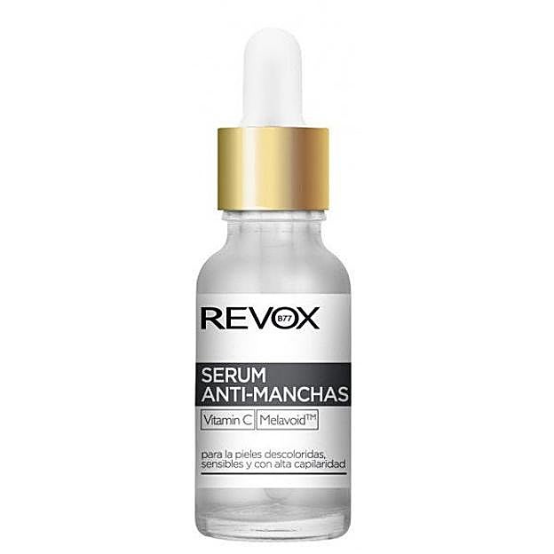 Contiene una combinación de activos de última generación como la vitamina C pura estable, vitaminas de los grupos E, B y alfa hidroxiácidos (AHA), que blanquean la piel inhibiendo el contenido de melanina. Reduce las manchas provocadas por el sol y la edad, unificando el tono de la piel y ayudando a sintetizar de forma natural el colágeno, protegiendo de la oxidación y reduciendo los efectos nocivos de los radicales libres. Precio: 18,90 euros.