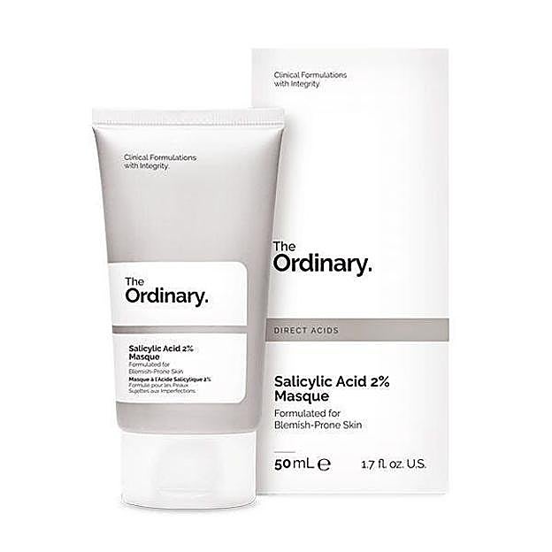 Salicilic Acid 2% Masque de The Ordinary. Se trata de una mascarilla facial cuya fórmula, impregnada de carbón y arcillas, tiene como objetivo mejorar la apariencia de suavidad y claridad, dejando la piel fresca. La estructura del ácido salicílico facilita la eliminación de las células muertas de la piel grasa y propensa a las imperfecciones, con el fin de revelar una piel más radiante debajo. El carbón y las arcillas ayudan a limpiar en profundidad los poros para mantenerlos limpios. Precio: 14,20 euros.