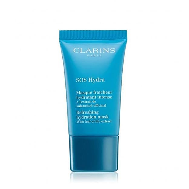 Clarins. SOS Hydra es una mascarilla refrescante que está formulada con extracto de Kalanchoe. En tan solo 10 minutos, la piel recupera sus niveles de hidratación, mientras que está fresca, unificada y alisada. (44 euros)
