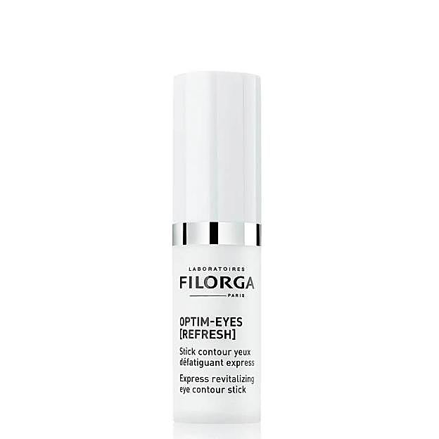 Otros dos contornos de ojos en un rango de precio asequible con una composición también muy completa son el Optim-Eyes Refresh Express Revitalising Eye Contour Stick de Filorga. Un contorno en stick con acción refrescante y revitalizadora inmediata que combate arrugas, flacidez, sequedad, ojeras y congestión. Está formulado con ácido hialurónico, extractos marinos hidratantes y antioxidantes, péptidos como el Melaton-Eyes, aceites de babassu y almendra dulce, vitaminas C y E, niacinamida, biotina, ácidos aclaradores, riboflavina y coenzima A.