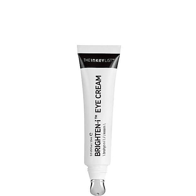 Y, la Brighten-I Eye Cream de The Inkey List. Una crema con aplicador metálico masajeador y refrescante, compuesta por una mezcla infalible contra los signos de la edad y la fatiga. Estos son brightenyl (4 veces más potente que la vitamina C), vitamina E, jojoba, manteca de mafura, ácido hialurónico, ácido gálico, extracto de ginseng y centella asiática.