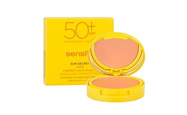 Si además de hidratada quieres tener un tono de piel unificado hasta en la playa, te recomendamos que elijas un maquillaje compacto con factor de protector solar 50, porque así estás protegida y divina con un sólo producto. El maquillaje compacto Sensilis sun secret con SPF50+ golden es una base de maquillaje en polvos preparada para unificar y corregir el tono y las imperfecciones de pieles claras, sensibles y con alergia al sol, a la vez que la protege frente las radiaciones UVA y UVB diarias. Te ayudará a evitar las quemaduras solares, el enrojecimiento y el fotoenvejecimiento cutáneo y cubrirás las pequeñas imperfecciones con un resultado mate, uniforme y natural. Encuéntralo en PromoFarma por 10,79 euros.