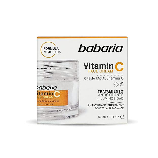 Otra crema asequible con vitamina C es esta de Babaria. Es una crema facial que cuesta tan solo 3,59 euros. Cuenta también con vitamina E. Tiene un poder antioxidante, aporta luminosidad al rostro y protege de la luz azul y de la polución. Está recomendada para todas las edades y pieles grasas.