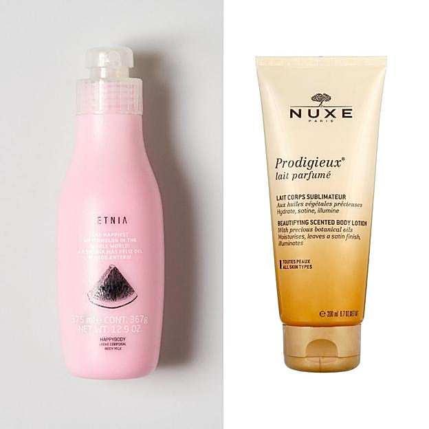 Ahora bien, si estás en búsqueda de una leche corporal que deje una buenísima fragancia en tu piel como si de una colonia se tratase, atenta a estas dos opciones que huelen de maravilla. La primera es Body Milk Sandia de Etnia (5,50 euros), una crema corporal hidratante de textura ligera que se funde en tu piel dejando un dulce aroma a sandía. Y la segunda es Prodigieux Leche Corporal de Nuxe (156,50 euros), que lleva el inconfundible aroma del aceite prodigioso de Nuxe y que cuida la piel y la deja delicadamente perfumada.