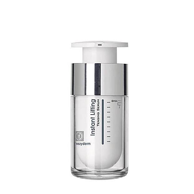 Este sérum garantiza resultados tensores inmediatos que se postulan como una alternativa perfecta a la cirugía de lifting facial en clínica. El tratamiento se formula con un biopolímero marino que construye una máscara invisible en la piel que la estira y la suaviza en pocos minutos, además que trabaja con su uso prolongado para recuperar la elasticidad, reducir la flacidez y reforzar el tejido conectivo. A la vez, los polvos efecto soft focus perfeccionan la tez por completo, ya que actúan como un filtro que corrige arrugas, difumina manchas, unifica el tono y deja un aspecto resplandeciente. Se aplica sobre la piel limpia, con las yemas de los dedos en movimientos suave y rectos ascendentes y requiere evitar movimientos faciales intensos durante diez minutos tras depositarlo. A los 15 minutos, el resultado será asombroso y el cutis se ve mucho más joven.