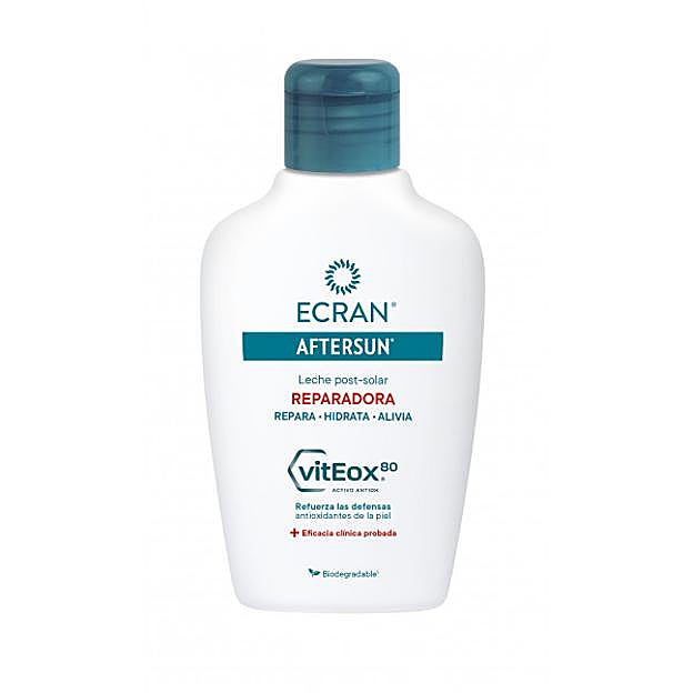 Apto para todo tipo de pieles, la leche hidratante y reparadora de Ecran refresca la piel tras la exposición solar. Su fórmula cuenta con la tecnología revolucionaria Cellular Repair Complex que evita el envejecimiento prematuro de la piel. ¿Lo mejor? Su textura ligera de rápida absorción que proporciona un alivio inmediato durante 24 horas.