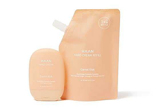 Por si fuera poco, nos encontramos ante la primera crema de manos recargable. Con el objetivo de eliminar al máximo los residuos generados, la marca ofrece la posibilidad de adquirir lo que llaman HAAN Refill, que es un envase equivalente a tres cremas de manos individuales con el que podrás rellenar tu envase habitual. Y es que ese envase no puede ser más bonito, tanto que lo puedes llevar en tu bolso como si de un complemento se tratase. Puedes encontrar el pack con las tres cremas de manos por 26,70 euros y cada recarga por 17,80 euros.