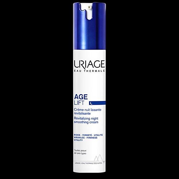 Age Lift de Uriage pertenece a la gama dermatológica de cuidados reafirmantes que alisa y reafirma todo tipo de pieles, incluso las sensibles. Esta crema de noche aterciopelada y reafirmante actúa simultáneamente sobre las arrugas, la firmeza y mejora la oxigenación celular. Al despertar, los rasgos están más descansados. La piel está más lisa, más firme y revitalizada. Los contornos del rostro están mejor definidos y la tez es uniforme y luminosa. Precio: 17,95 euros en Primor.