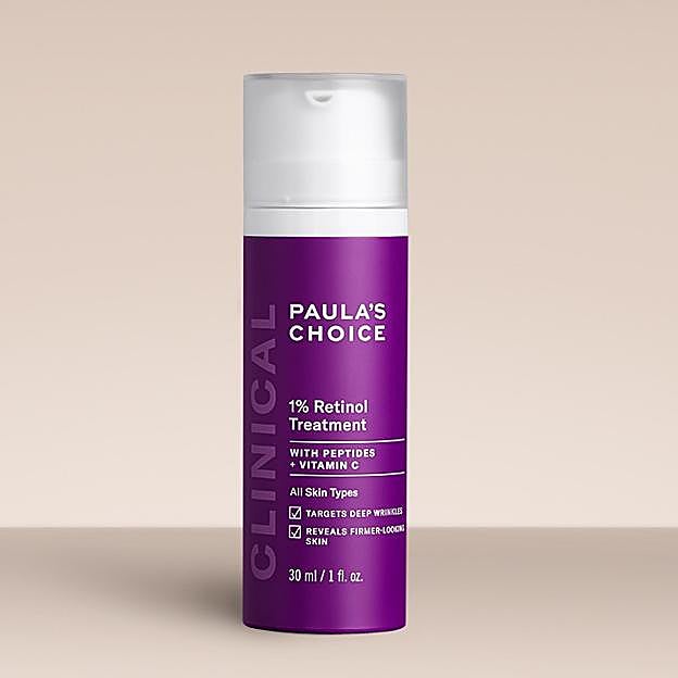 Tratamiento 1 % Retinol de Paula's Choice. Esta loción ligera combina una alta concentración de retinol puro con potentes antioxidantes para mejorar la hidratación al instante, reducir la apariencia de las líneas de expresión y las arrugas, y homogeneizar el tono de la piel. Precio: 68 euros.