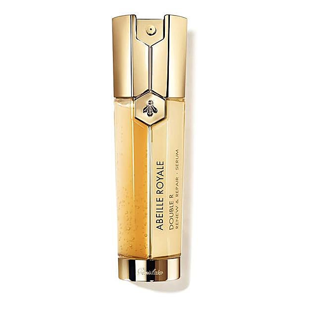 Y, por otra parte, el Abeille Royale Double R Renew & Repair Serum de Guerlain. Este sérum conjunta la eficacia de la tecnología soft-peeling con la corrección antiedad para conseguir una acción de alto rendimiento sobre estos signos. Favorece la renovación cutánea sin agredir ni irritar, tiene un efecto lifting obtenido de la combinación de la jalea real y la miel de abeja negra de Ouessant, perfila y esculpe las facciones y el contorno, afina la textura, atenúa poros, minimiza al máximo las arrugas y hace que el rostro resplandezca.