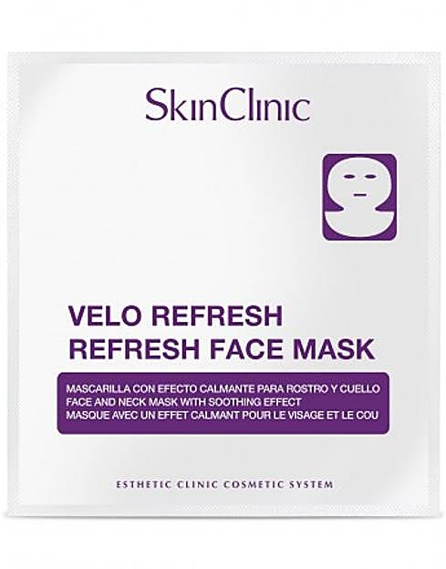 Velo Refresh de SkinClinic es una mascarilla calmante para la recuperación de la piel irritada o estresada con una combinación de activos, que calman y minimizan el estrés cutáneo de la piel. Es para rostro y cuello, lleva Ácido Hialurónico, Centella Asiática o Árnica, entre otros y consigue un efecto hidratante inmediato (12,50 euros).