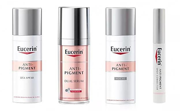 Comenzamos nuestra selección con la gama de productos Eucerin Anti-Pigment, que se compone de un sérum dual, una crema de día, una crema de noche y un corrector de manchas con Thiamidol, un principio activo eficaz que actúa en el origen de la hiperpigmentación reduciendo la producción de melanina reduciendo las manchas oscuras y evitando su reaparición. Los primeros resultados son visibles después de dos semanas y mejoran continuamente con el uso regular. Puedes encontrar todos los productos en DosFarma por 25,47 euros la crema de día con SPF 30; 29,65 euros el Dual Sérum; 26,29 euros la crema de noche; y 15,09 euros el corrector de manchas.