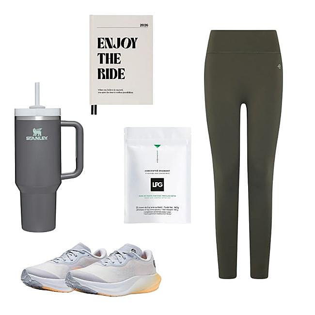 Si estás inflamada no hay nada como un kit de supervivencia: unos leggings que se adapten bien como estos de Ecoalf (69 euros), una botella de agua con capacidad suficiente (Stanley, 35euros), una agenda para controlar el estrés (Kokonote, 19,95 euros), unas infusiones drenantes (LPG, 29 euros), y unas zapatillas para salir a caminar (Lululemon, 158 euros).