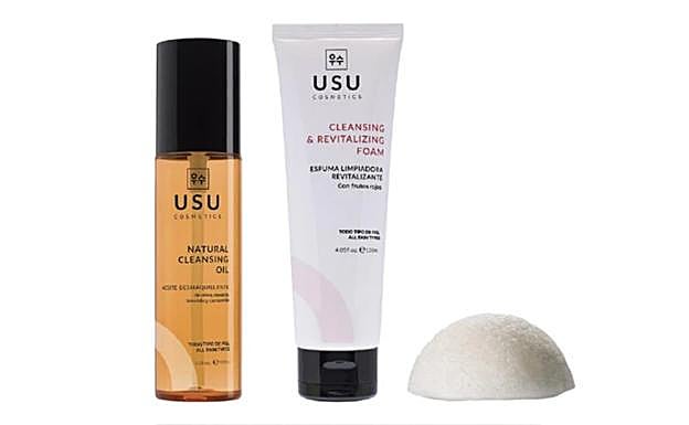 En cuanto a limpieza facial, nosotras lo tenemos claro: las coreanas son las que mejor lo hacen. Por ello, aconsejamos sin lugar a dudas que te inicies en su doble limpieza, que implica aplicarte primero un limpiador con base de aceite, para continuar con otro de base acuosa. Dicho así, puede darte pereza, pero te aseguramos que no te llevará más de unos minutos y los resultados en tu piel son espectaculares. Si te quieres iniciar en esta práctica, te recomendamos el pack doble limpieza de la marca española Usu Cosmetics, que incluye todo lo que necesitas para dejar tu piel limpia y lista para recibir los mejores activos de tu tratamiento habitual (40 euros en su web). Contiene un aceite desmaquillante, que combina la lavanda y la naranja con el efecto antioxidante del aceite de oliva; una espuma limpiadora revitalizante de frutos rojos, que además de limpiar, hidrata la piel; y una esponja konjac, que te ayuda en la tarea de limpiar en profundidad tu piel.