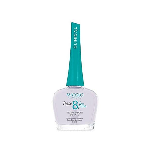 4. Aplica una base tratante o fortalecedora, que no solo cuidará tus uñas, sino que también les dará un brillo natural. Los expertos de Vitry advierten que «no es recomendable dejar las uñas sin brillo ni base, ya que la exposición al aire las debilita y las hace más frágiles». Nos encanta esta opción de Masglo, queRepara las uñas amarillentas y quebradas (10,45 euros en Druni).