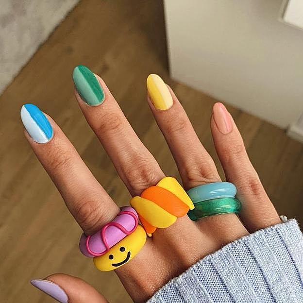 La manicura arcoíris es otra de las favoritas de las 'influencers' este verano. Una idea muy favorecedora y divertida con la que darle la bienvenida al buen tiempo con muchas ganas. Hay muchas opciones, desde en tonos más llamativos, hasta en tonos pastel.