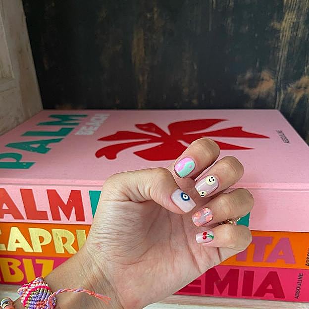 Es la última manicura que hemos visto triunfar en redes. Una de las 'influencers' que ha estrenado esta manicura tan divertida es María Pombo. La 'influencer' madrileña ha sorprendido a todos sus seguidores con esta manicura llena de emoticonos como flores, 'smileys', e incluso el símbolo del ying y el yang. Sin duda, una manicura muy original y perfecta para la temporada del verano. Aunque hay bastante color, algunas de las uñas cuenta con base de color nude, lo que permite que sea un tipo de manicura más fácil de combinar.