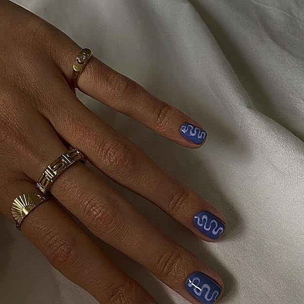 Es otra de las manicuras más vistas en las redes esta temporada. Se trata de una manicura sencilla, con fondo de un color en todas las uñas, y en cada una de ellas se añade una pequeña onda. 'Influencers' como Belen Hostalet o Alejandra Navarro se han vuelto adictas a este tipo de 'nail art'.