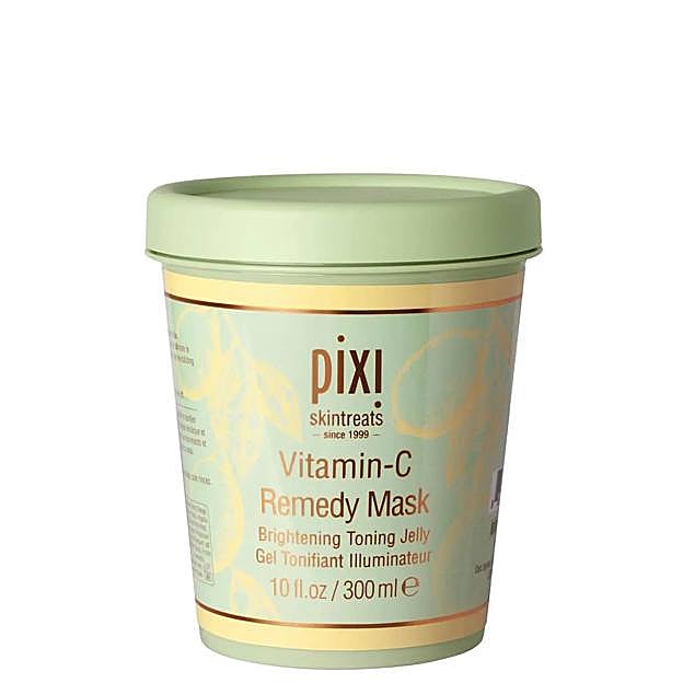 Y, la Vitamin-C Remedy Mask de Pixi. Esta mascarilla rejuvenece e ilumina el rostro por completo con su gran carga de ingredientes antioxidantes que hacen que la tez se vea más firme, rellena, clara, suave, sin imperfecciones y resplandeciente, revitalizando la apariencia y dando un impulso a la piel. Su lista de activos está protagonizada por la vitamina C, el ácido ferúlico y las algas, para hidratar en profundidad, tersar, levantar las facciones, borrar manchas, aportar luminosidad, dar volumen a la piel y atenuar las arrugas. También encontramos una mezcla de extractos despigmentantes, unificadores del tono e iluminadores como la raíz de regaliz, la cúrcuma, el espino amarillo y el té verde. Para mejores resultados, la mezcla de aceites de argán, espuma de los prados y rosas, más la centella asiáctica. Y, la cafeína y el ginseng aparecen como energizantes.