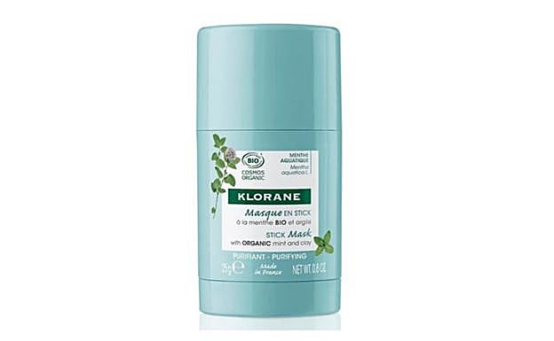 El último producto en stick que hemos descubierto es la mascarilla en stick a la menta acuática BIO y arcilla de Klorane, cuyo ingrediente principal tiene propiedades antioxidantes y detoxificantes. Este producto tiene doble acción: un efecto «escudo» para proteger la piel y una acción detoxificante para eliminar las toxinas. Y es que ete efecto escudo es muy importante, sobre todo si vives en una gran ciudad, ya que la contaminación aumenta la secreción de sebo dando la sensación de piel que se engrasa rápidamente. Atrapadas en el sebo, las partículas de contaminación forman una capa gris que se mezcla con la de las células muertas lo que asfixia la piel, ralentiza la renovación celular y apaga el brillo.