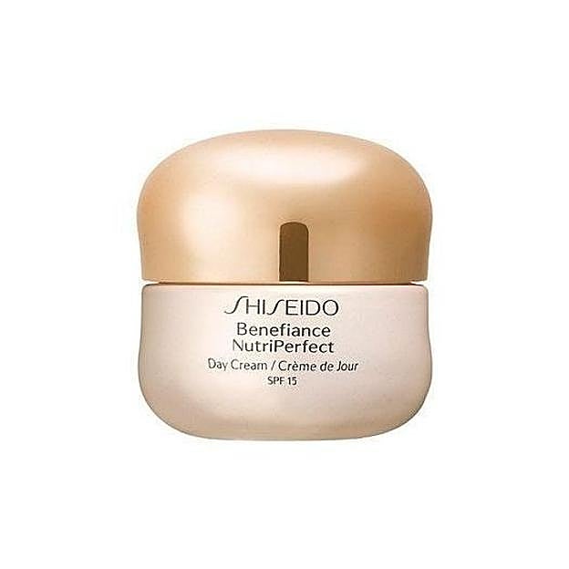 Benefiance Nutri Perfect de Shiseido. Una crema hidratante de día pro-reconstituyente con SPF15. Esta crema de Shiseido está diseñada para ayudar a las pieles maduras a combatir las arrugas, la pérdida de firmeza y las manchas, gracias a su composición con Pro-Fortifying System y Carnosina DP. Lleva una combinación de 3 tipos de algas que normaliza la renovación de la piel y estimula la producción de ácido hialurónico.