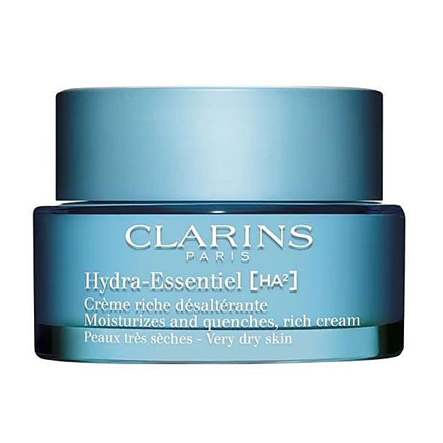 Hydra Essentiel de Clarins. Especialmente diseñada para combatir la sequedad extrema, proporciona una hidratación intensa y restablece la capacidad de la piel para retener agua, gracias al extracto de vitela. El extracto de vitela estimula la producción de ácido hialurónico, manteniendo la piel hidratada durante más tiempo y otorgándole un aspecto luminoso.