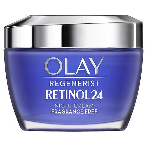 Regenerist Retinol 24 de Olay. Combina dos ingredientes muy potentes: vitamina B3 (niacinamida) + complejo retinoide para ofrecer 24 horas de hidratación, junto con otras propiedades. Esta crema facial de noche con retinol mejora visiblemente arrugas y líneas, textura, luminosidad, firmeza, manchas y poros. Se absorbe rápidamente y trata las capas más profundas de la superficie de la piel para que despiertes cada mañana con una piel más joven y radiante. Precio: 34,99 euros en Primor.