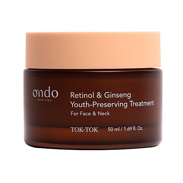 Retinol & Ginseng Youth Preserving Treatment de Ondo Beauty. La crema reafirmante definitiva para rostro, cuello y escote. Una poderosa fórmula con retinol, péptidos efecto bótox y extracto de ginseng que combate la sequedad, la flacidez y las líneas de expresión. Si buscas una hidratación profunda, firmeza y una piel radiante, esta crema es ideal para ti. Precio: 34,99 euros en Miin Cosmetics.